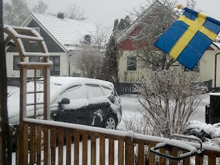 Synen utanför fönstret när man vaknade i morse var ju inte särskilt upplyftande. SNÖ! Nästan så man kunde tro det var julafton, men dit är det faktiskt 254 dagar. Nu är väl Tomten glad…