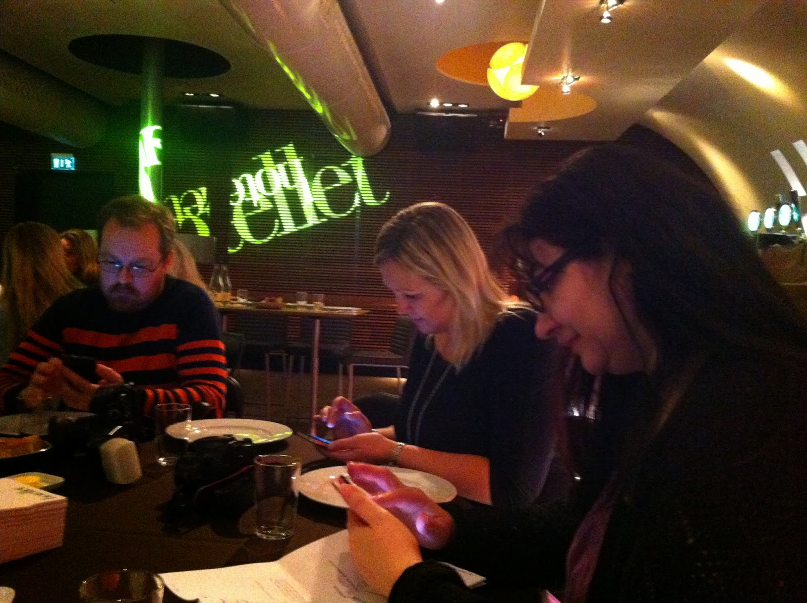 Det var en himla mysig lunch, sådär lagom mycket folk där nästan alla kände varandra. Jag satt tillsammans med Nadja, Annelie och Kari. Det är lite speciellt när man delar bord med bara bloggare… alla är fullt upptagna med att ta bilder och skicka ut på olika medier, så man är inte särskilt social riktigt hela tiden – men förståelse är total och ingen tittar snett på en.