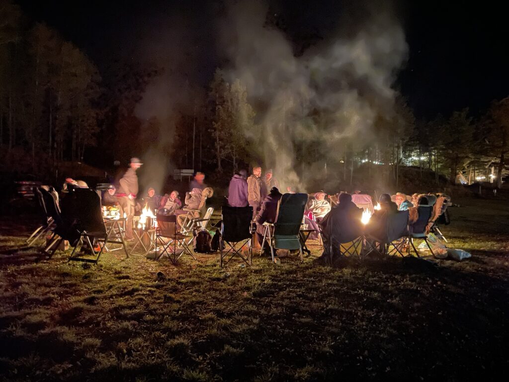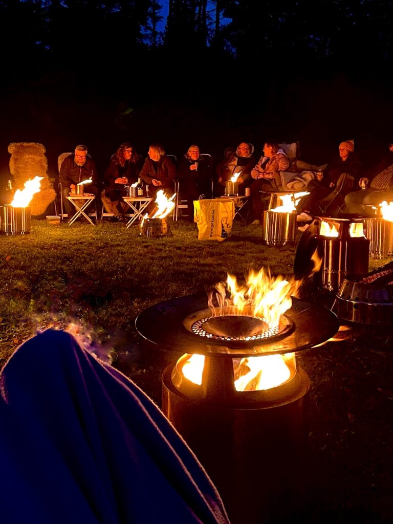 Vad gör man på en husbilsträff? Vad är grejen? Jo, man umgås. Skrattar. Pratar. Och eldar. Många eldar blire… särskilt på hösten och vintern. Tror jag räknade till 11 sk solostoves, en metalcylinder som är gjord för att elda i. Plus några små, som kan ställas på ett bord. Redan på fredageftermiddagen tändes eldarna. Några passade på att grilla korv till middag. Vi åt inne i bilen och gick ut efteråt. Trots att jag satt hyfsat nära en av eldarna och hade flera lager med kläder, så frös jag rejält vid 20.30. Då gick vi in och tittade på tv, men några satt faktiskt kvar, trots minusgrader, ända till 3 på natten.