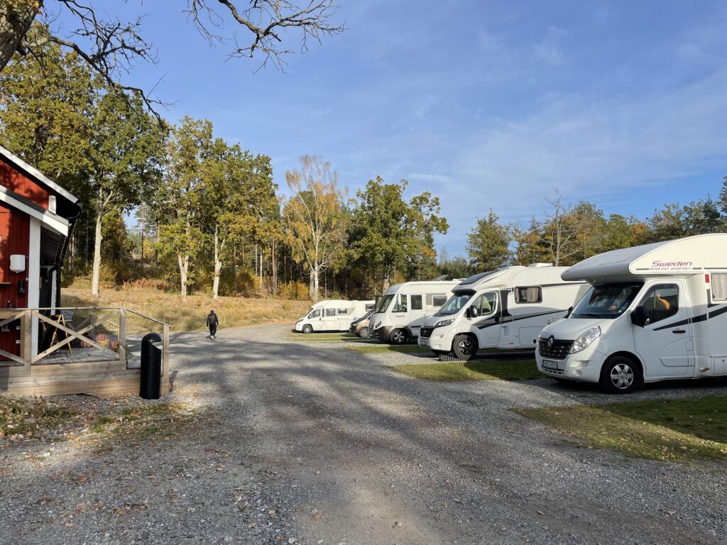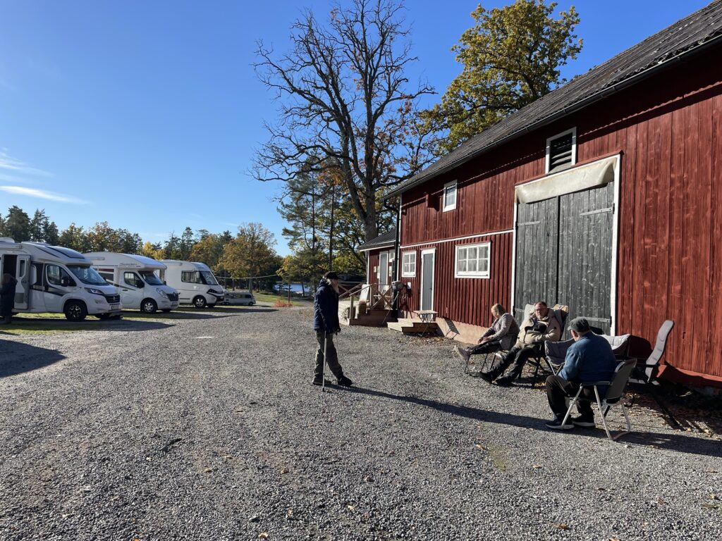 Förra veckan packade vi i ihop oss och körde till Stegeborg. Där stod vi och jobbade ett par dagar innan vi packade ihop oss igen och körde den korta biten till Örnvikens Camping utanför Söderköping. När vi kom på torsdagen var här redan 5 bilar. På fredagen rullade det in ett 20-tal till. Totalt blev vi 27 husbilar, runt 50 personer och sisådär 15 hundar och några katter.