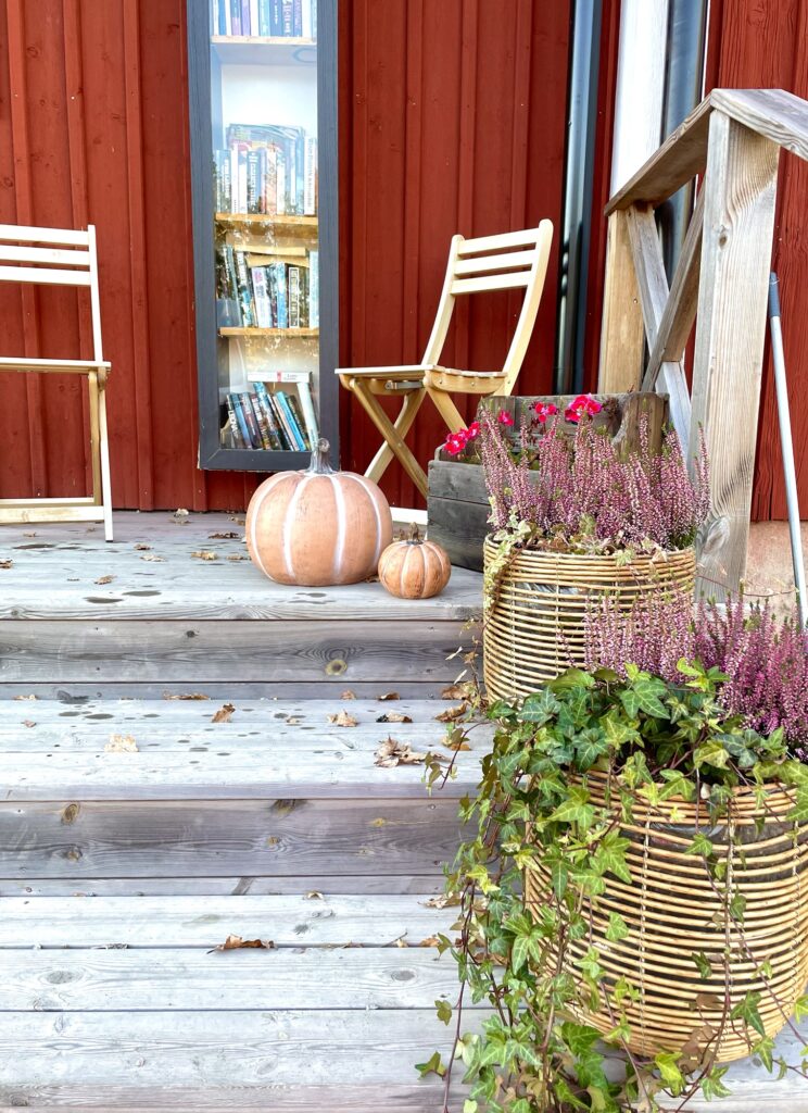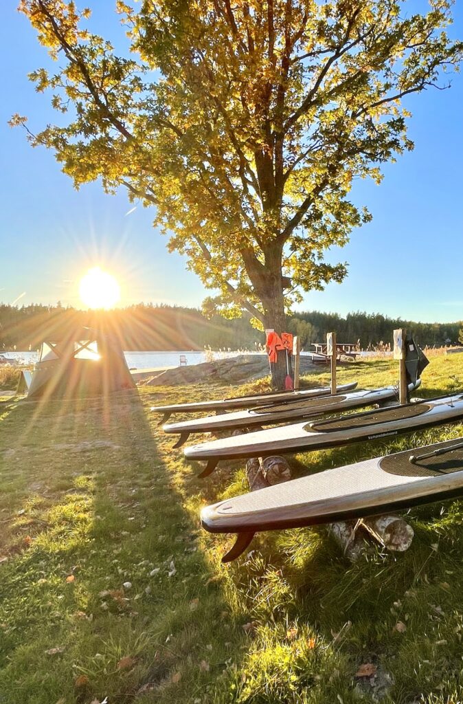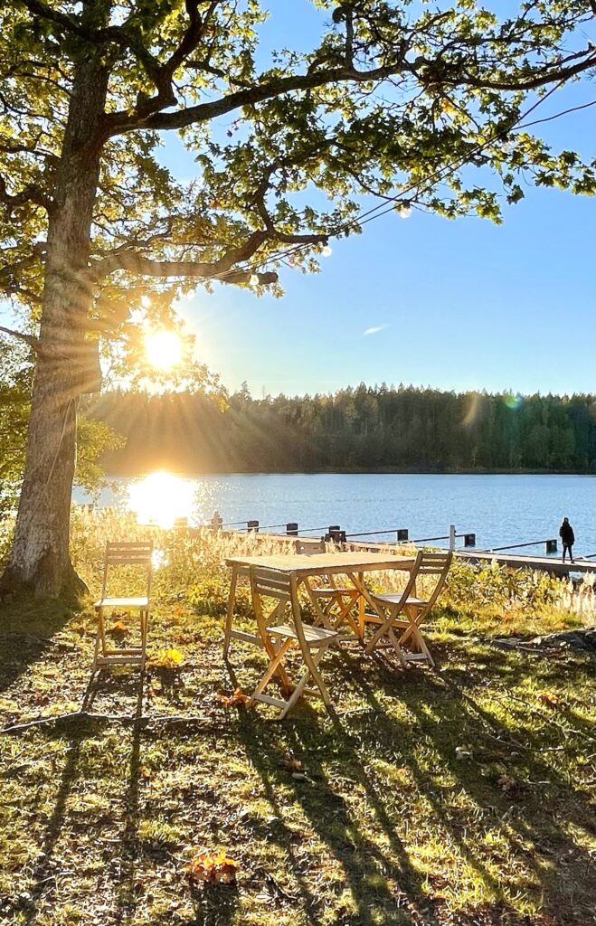 På lördagen vaknade vi till klarblå himmel och sol. Satte man sej i lä så var det så pass varmt att man kunde sitta i bara t-shirt och njuta. Så det gjorde vi såklart och vi fick sällskap av både hundar och deras tvåbeningar. Det var så pass varmt att vi passade på att äta lunchen ute, kanske årets sista. Några passade på att både basta och bada, jag är ingen större fan av vare sej bastu eller bad – så vi satt kvar i solen istället.