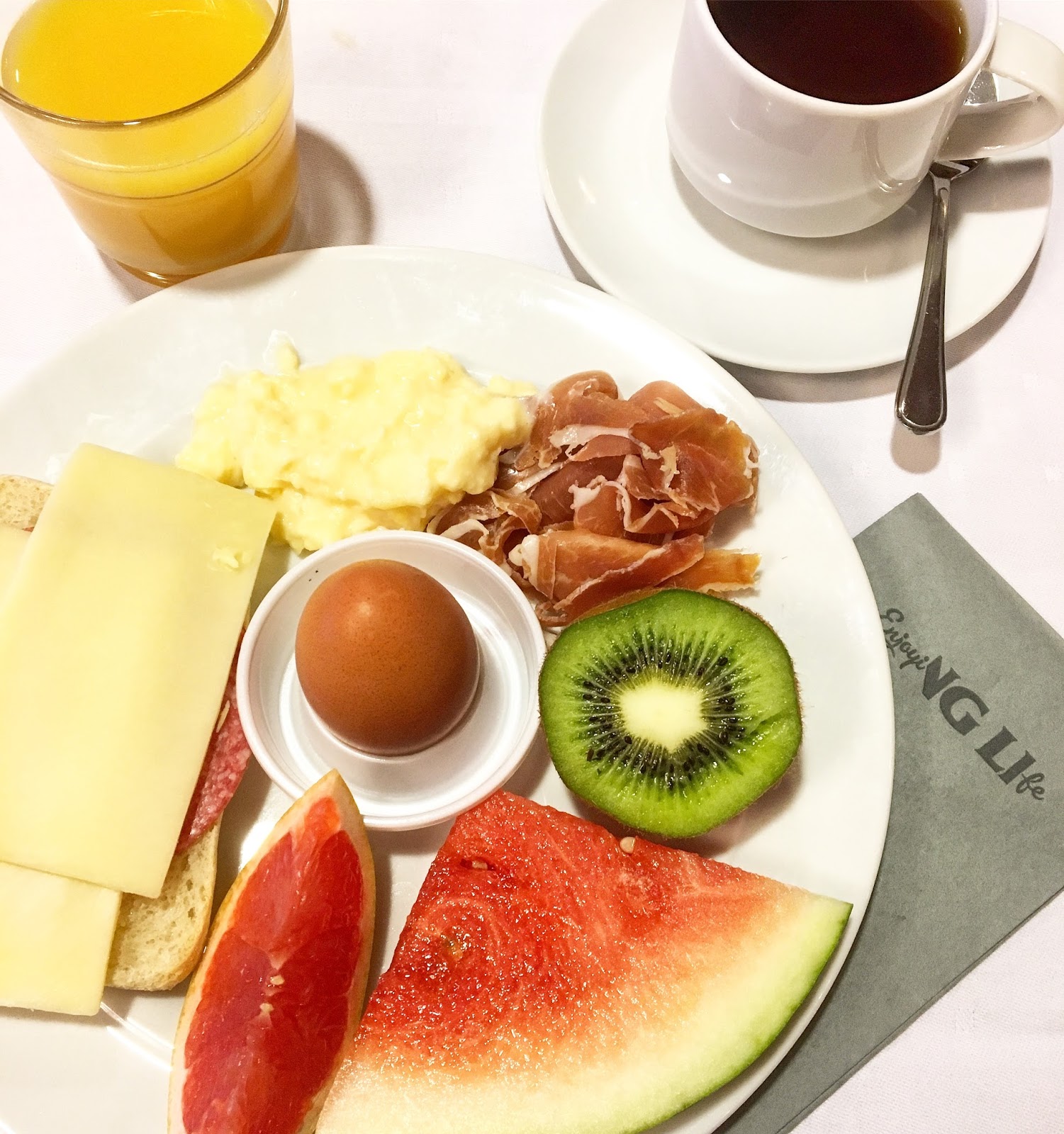 Lördagen började med sk lyxfrukost, vi tackade dock nej till champagne. Bubbel kl 9 på morgonen är inte riktigt vad jag längtar efter, men ger förmodligen lite coolare bilder… Vi åt länge, allt var väldigt gott. Särskilt äggröran, som nog är den godaste jag ätit någon gång! Men nu är tanken att jag ska köra upp på banan igen med vikten, så jag åt mest frukt och sånt jag brukar äta hemma. Eftersom det finns så mycket att välja på, är det inte särskilt svårt att göra bra val.