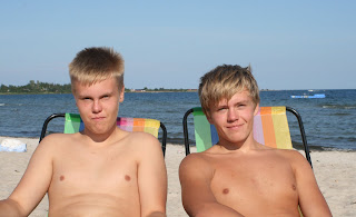 Efter lunch packade vi ihop oss för stranden, men innan strandbesöket skulle grabbsen/gubbsen åka gocart. Äntligen tyckte nog M som nog var den som såg fram emot detta mest. Jag och K satt brevid och titta, jag var dessutom förste fotograf. SEN blev det stranden! Men tyvärr blåste det ganska mycket, så det var inte helt njutbart. Men vi fick sol på kroppen och killarna badade. Vi stannade bara en dryg timme, den var det lite för kallt. Så vi åkte hem och solade på vår baksida istället, där var det riktigt varmt och skönt.