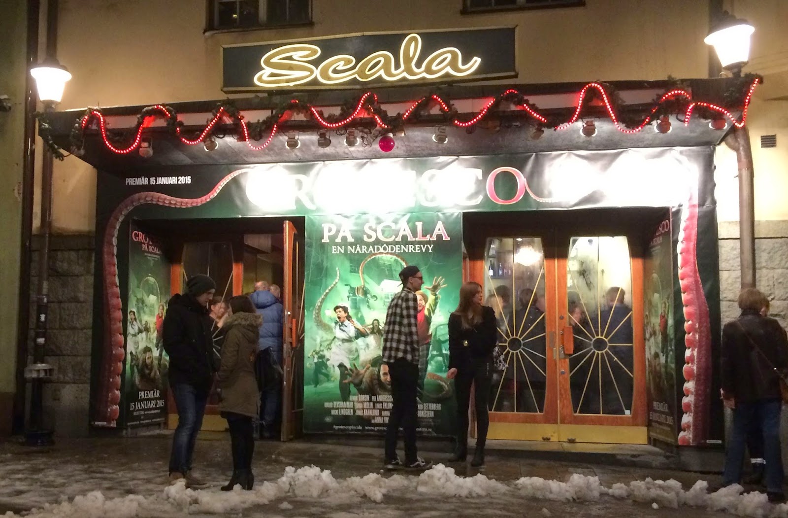 Då var det bara att rulla iväg till nästa stopp! Vi gick den korta biten till Scalateatern där vi skulle se publikrepet av Grotescos nya föreställning. Oj, vilken härlig kväll det blev! Jag berättar mer om föreställningen i nästa inlägg. Vi skrattade bort några kalorier och hämtade hem en nöjd hund strax innan midnatt.