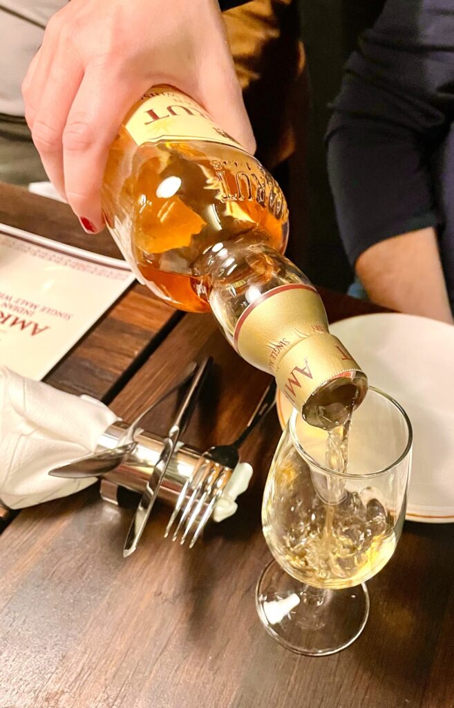 Amrut Bagheera blev min favorit bland dryckerna och aloo chaat var godaste rätten. Allt var gott och en upplevelse i sej. Och jag blev rejält sugen på att återse Indien. Inte de norra delarna, dem har jag ju sett, men gärna kusten och någon av turistorterna. Många har tipsat om Kerala, så det blir det säkert någon gång. Kommer vi dit är vi iaf inbjudna till destilleriet i Bangalore och det skulle såklart vara jätteroligt att se. Vem vet… kanske blir så en dag 🙂