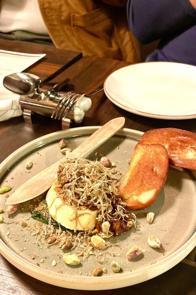 Nummer två var Amrut Indian Single Malt, gjord på skotsk malt men med indiska smaker. Till den fick vi paneer pav som är en färskost toppad med tryffel och pistagenötter. Tredje smakprovet var Amrut Fusion, nu började rökigheten komma fram och då tappar man mej. Jag tycker inte om rökiga smaker. Till den serverades black daal toppad med rökt avrugacaviar och citronkräm. Jag gillar inte rökigt och har inte daal som favorit… MEN daalen var faktiskt överraskande god!