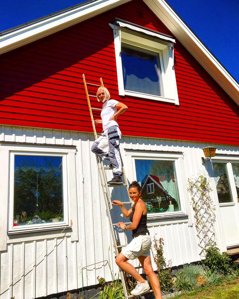 Så var det bara att vänta på fint väder och förra fredagen var det dax! Tove och hennes lillasyster Majken dök upp på morgonen redo att ta sej an jobbet. Vilka tjejer! Jag är så glad att jag tog just deras hjälp! Snacka om effektivitet! Här snackar vi brudar som jobbar, inga långa fika- eller rökpauser. Inget skitsnack, bara jobb! Nästa för effektiva… det var ändå 25 grader varmt och de tog knappt en enda paus på fyra dagar. Första dagen gick åt till att tvätta huset som sedan fick torka under helgen. Måndag och tisdag målades det för fullt och på onsdagen fixades finliret och smådetaljer.