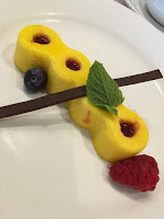 På plan 2 och 3 bor fler av personalen, lite chefer och sånt och på plan 4 äter vi. Här finns Minstral Diningroom, där vi varje kväll får fantastiska trerättersmiddagar. Vi får en meny att välja ifrån och är vi det minsta missnöjda med maten, så ger man oss mer än gärna något annat. Varje kväll är det en ny meny och det finns faktiskt tom lågkalorialternativ. Vi får väl se om det hjälper…