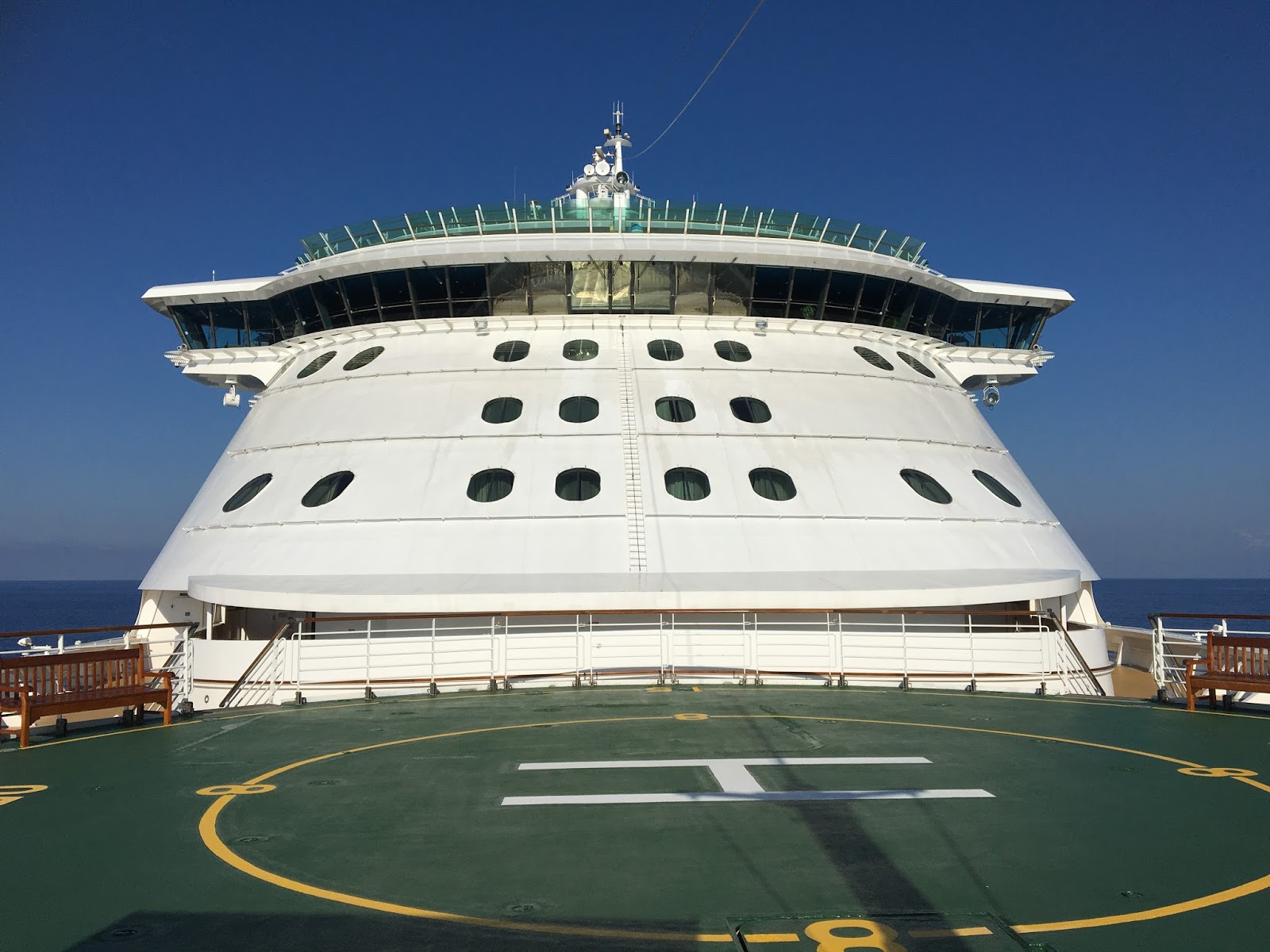 Kommandobryggan på Brilliance är 40 meter bred. Där finns fönster i golvet så att man säkert ska kunna passera bla Panama-kanalen med de ca 30 cm som finns till godo på varje sida. Detta är det största fartyget som går i den kanalen. Fartyget är ca 300 meter långt, vilket är nästan 100 meter längre än tex Silja Symphony. Så där har ni lite att förhålla er till och jämföra med.