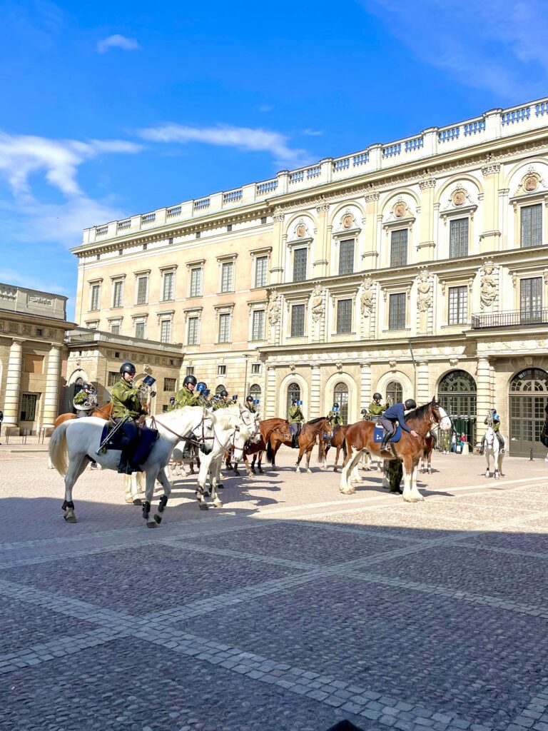 Vädret böjd verkligen på sin allra bästa sida, så jag kunde slänga av mej sjalen och gå med uppknäppt jacka. När jag var i närheten av slottet hörde jag musik och följde den in på slottsgården. Där stod en musikkår av något slag, kanske armén eller ridande polisen? De bjöd på ett gäng av Avici´s låtar och det var så himla bra. Solen sken, musiken ljöd och vackra hästar stod på rad i en väldigt vacker miljö. Så jag blev kvar där en bra stund och bara njöt.