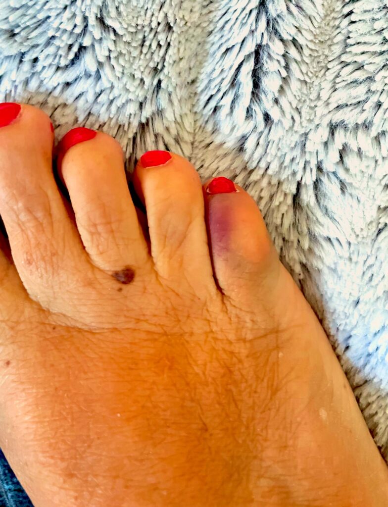 6 timmar senare och en flyttkartong fattigare är vi hemma igen. Då drar jag av mej skon och strumpan och hittar en färgglad liten tå som är svullen och pulserar av smärta. Vis av skadan, detta har jag som sagt gjort några gånger, vet jag att en bruten lilltå inte är att göra något åt. Kanske möjligtvis tejpa ihop med grannen, men oftast inte ens det. Jag vet att jag har två helt obokade dagar framför mej, så jag accepterar bara läget och tar plats i min massagefåtölj.