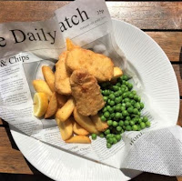 Efter alla uppvisningar var vi hungriga. Vi tog ett sista varv runt parken och gick sedan upp till restaurangen vid parkens entré. Här satt vi sedan en lång stund i solen och åt bla fish and chips till lunch. Rättare sagt; Maja tog fish and chips och jag tog haloumi and chips, vilket var den vegetariska varianten och det var så gott!