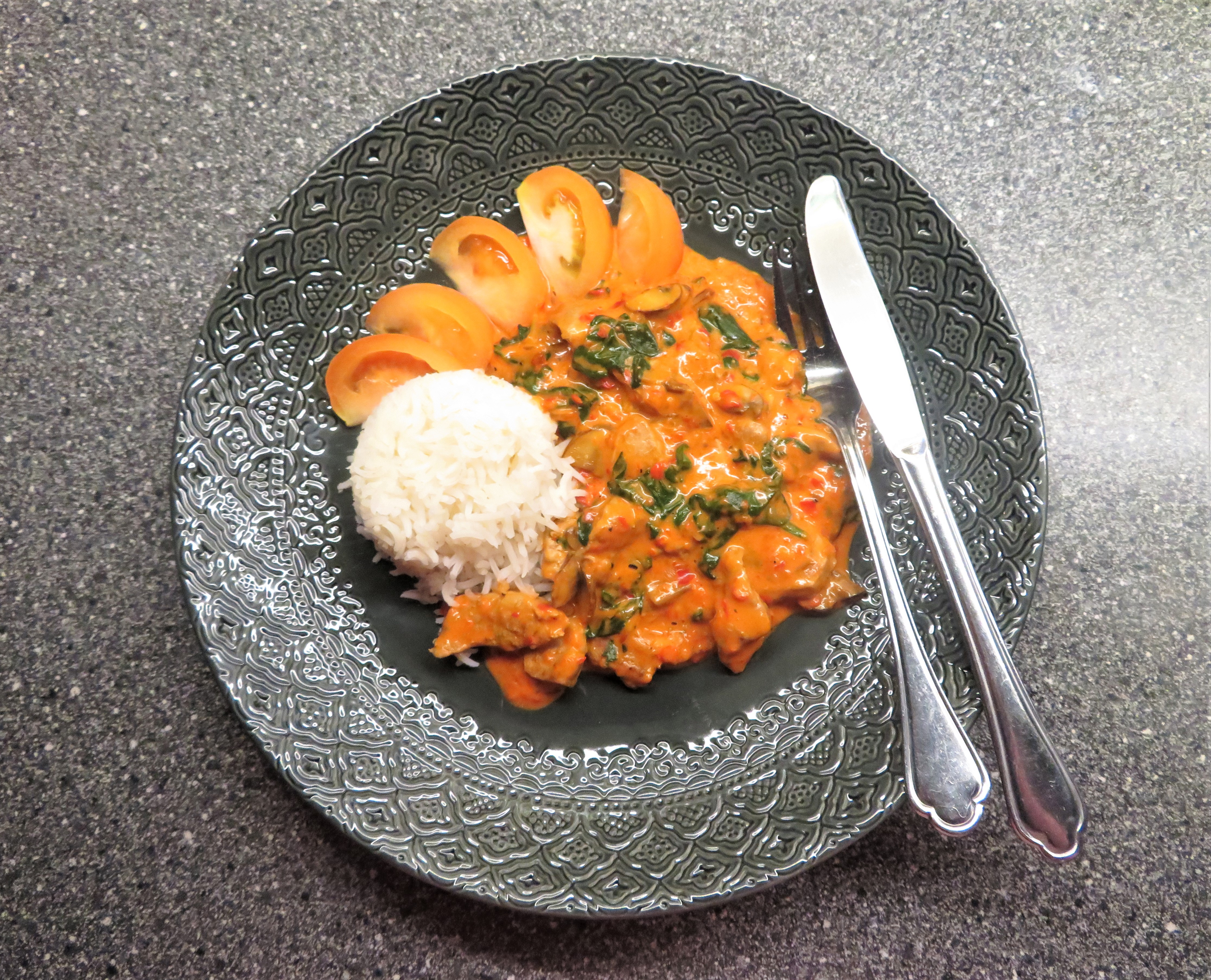Fredag: Fläskfilegryta med champinjoner och spenat 6 SP Flex plus ris