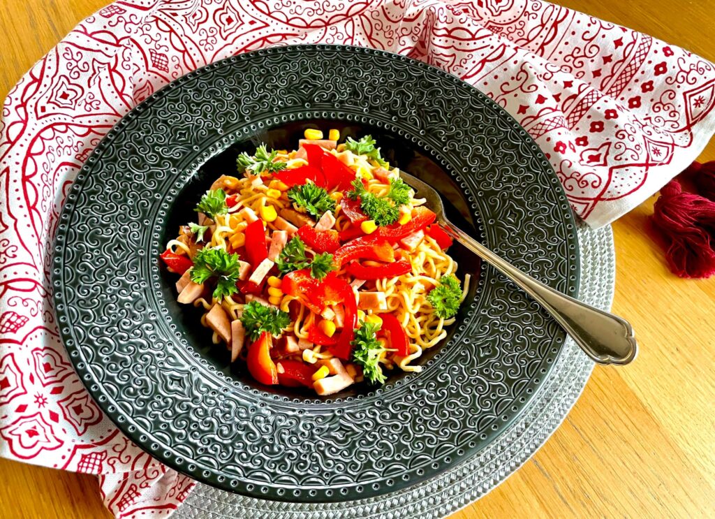 Fredag: Nudelwok med kassler (fr 5 P/port)