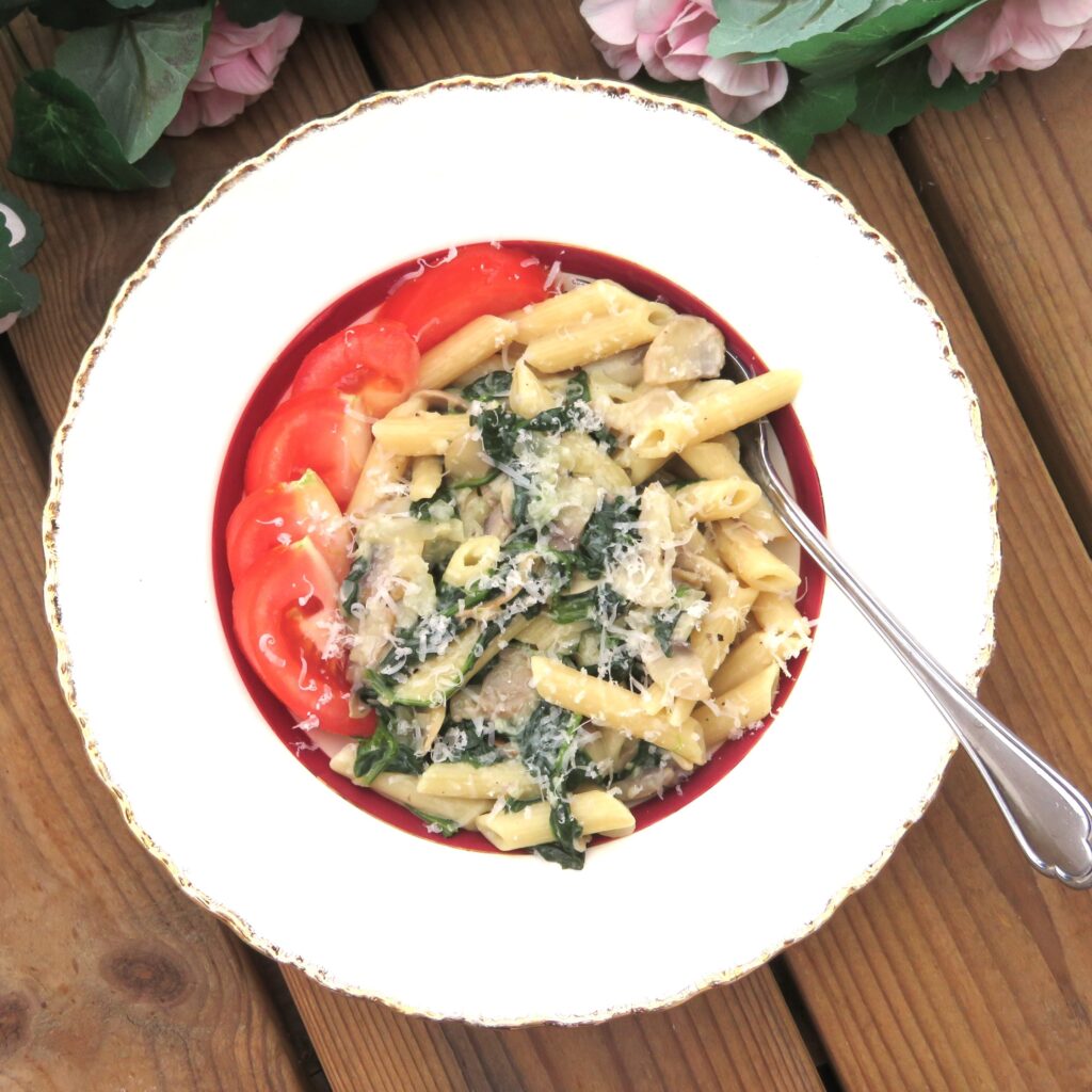 Måndag: Pasta med krämig champinjon- och spenatsås (3 P/Port, plus pasta)