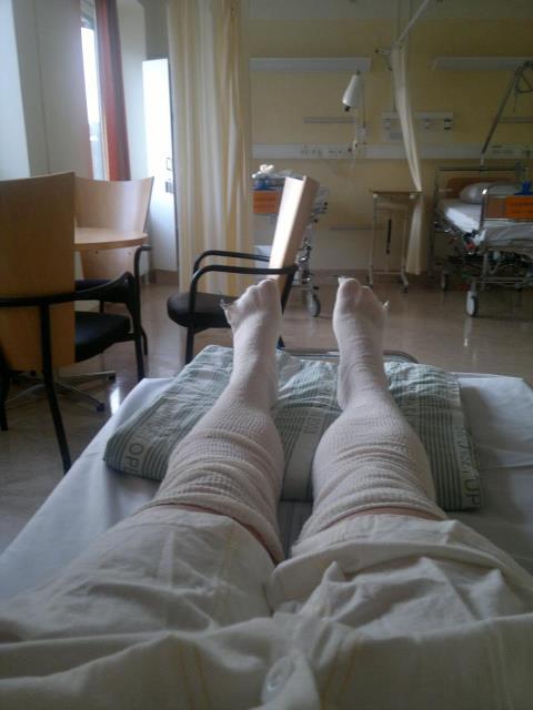 Så jag hann bara skicka sms till Martin och pappa och uppdatera Facebook och sen rullades jag iväg. Väl framme på operationsavdelningen presenterade sej mängder med människor och han som var min narkosläkare var otroligt nog en fd medlem och granne. Det kändes jätteskönt att ha nån man känner som sköter ens andning. Tryggt och bra! Sisådär 2 minuter senare sov jag.