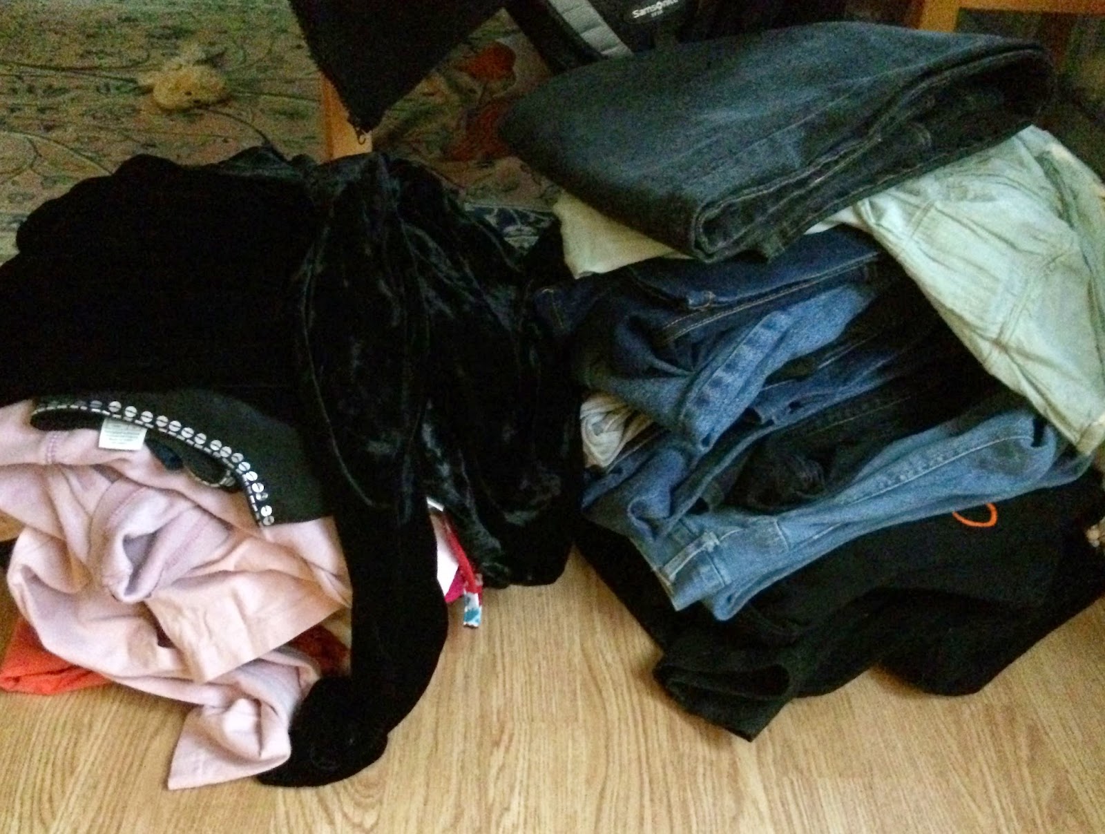 Idag drog jag av mej min rehab-behå och tog på mej den enda riktiga behå som jag äger just nu. Jag skulle nämligen rensa bland mina kläder och ville ha ”rätt” form på kroppen. Sen gick jag systematiskt igenom varenda tröja och klänning. Kvar blev två högar, en med kläder jag fortfarande kan ha och en som åker till Gambia. Det var rätt mycket som var ganska mycket för stort…