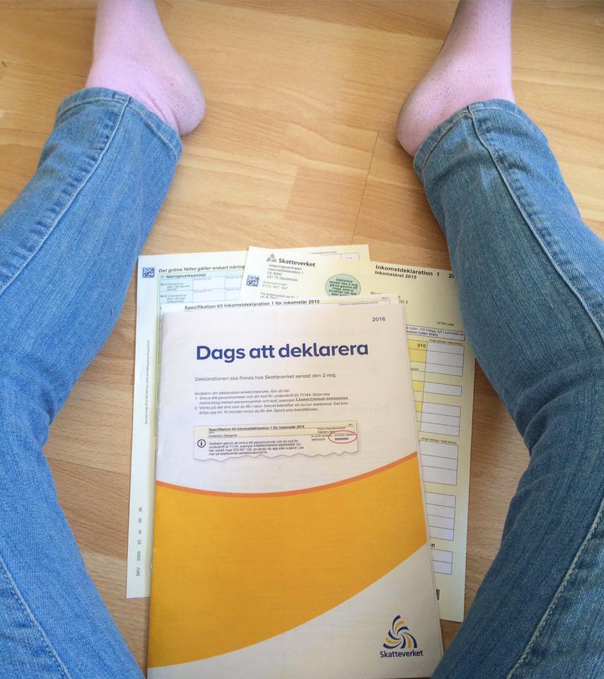 Idag har vi även fixat de förhatliga deklarationerna. Inte ens i sista minuten!!! Jag är inte kompatibel med siffror och papper och har aldrig varit, så det får Martin ta hand om. Förr om åren har det varit min pappa som gjort det och det har nästan alltid slutat med att jag blivit frustrerad över något papper eller siffra som inte stämmer eller hittas. I år är första gången jag kan göra allt på nätet, förut har det alltid varit något med företaget, huset eller mina aktier som inte gått att deklarera elektroniskt. Å då ska man inte bara skriva allt för hand, man ska hitta en sån där förbenkad brevlåda också! Och de växer inte på träd, som de gjorde förr. Varför skickar hon inte med posten, tänkte ni nu. För att jag inte litar på posten! Jag saknar hur mycket post som helst och tänker inte bli skyldig 2000 spänn för att min deklaration kommit bort. Så hittills har jag (eller pappa) letat upp den där brevlådan. I år behöver jag inte det. Nu är allt klart, deklarationen är inskickad elektroniskt och det känns otroligt skönt!