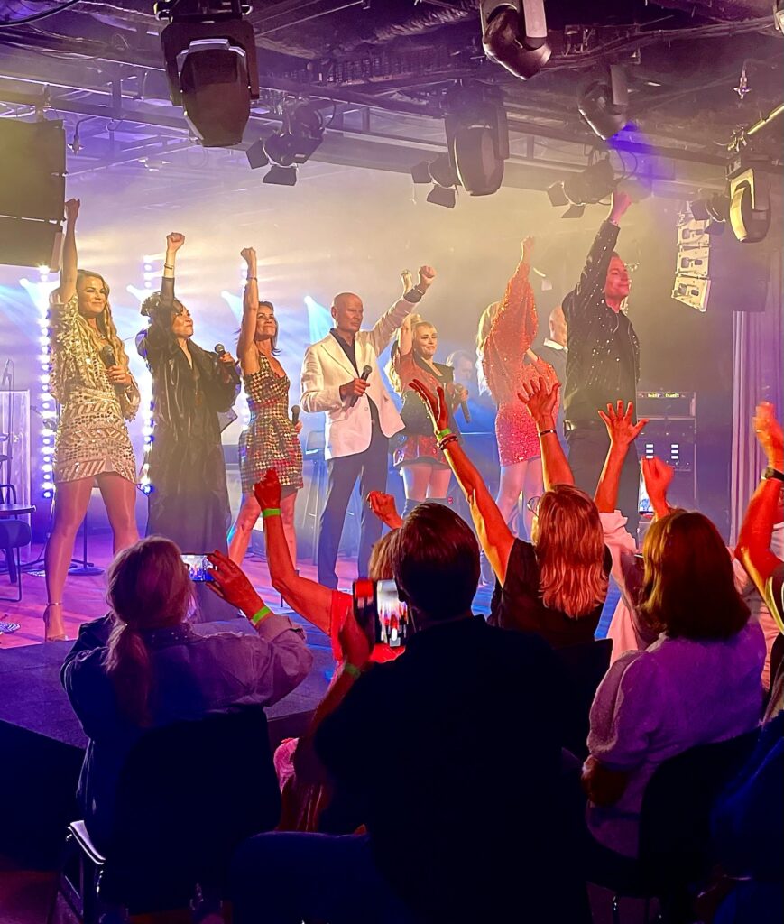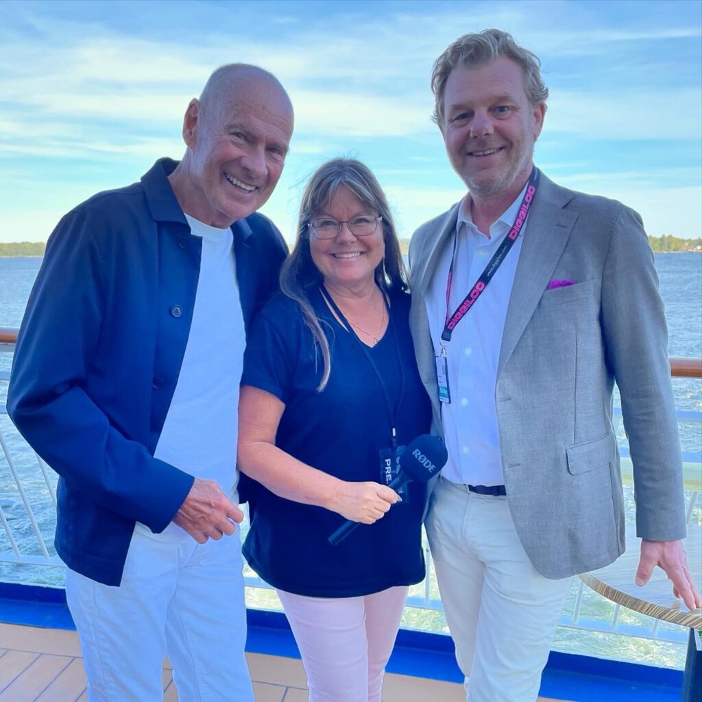 Vi hade alltså fullt upp och artisterna likaså. Ändå hann vi få en fin intervju med Bruno, som berättade öppenhjärtligt om sina år med Diggiloo och hur han upplevt kryssningen. Vi pratade också med Jessica, veteranen i gänget. Hon har varit med alla år utom tre och är verkligen Diggiloo´s okrönta drottning. Och precis innan vi gick av båten på fredagen fick vi även en himla härlig intervju med Lasse Holm och Patrik Krall som arrangerat alltihop. Och kanske fick vi ett litet scoop då också 🙂
