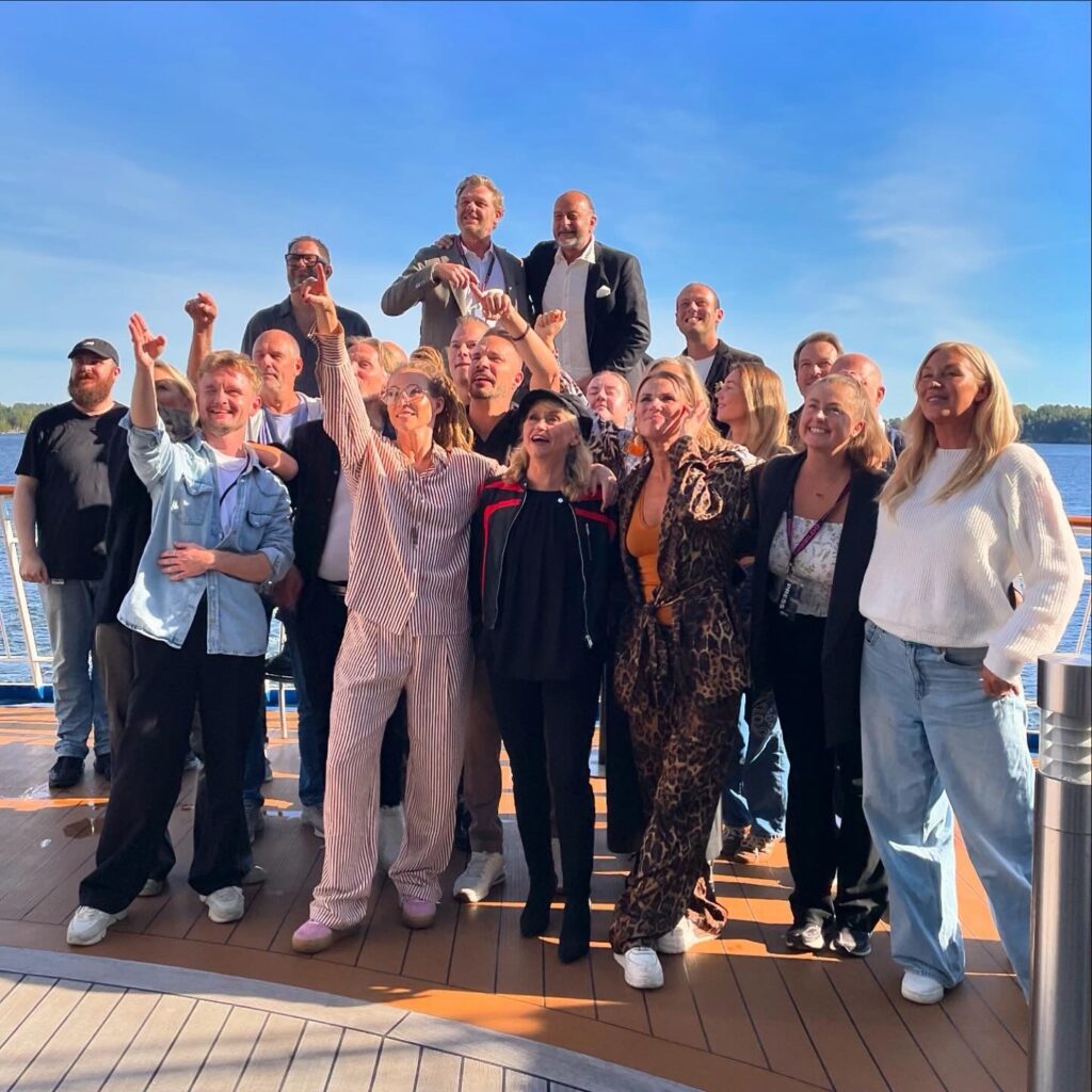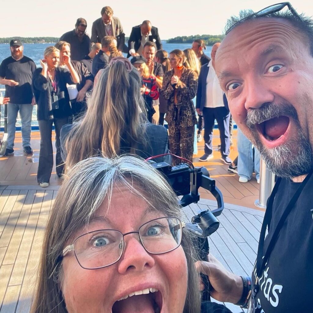 Även om vi hade fullt upp, så hade vi så roligt! Att få hänga med ett så här stort gäng, där vi alla jobbar samtidigt men på olika sätt är rätt häftigt. Hur vi alla respekterar varandra arbetsområde och hjälper varandra. Vi pratade en hel del med TV4´s fotograf om våra lika men olika jobb. Vi som dokumenterat premiären medan dom samlat material från den allra sista föreställningen och nu på båten. Våra filmer visas i sociala medier, deras på en stor tv-kanal – ändå fyller vi båda en funktion.