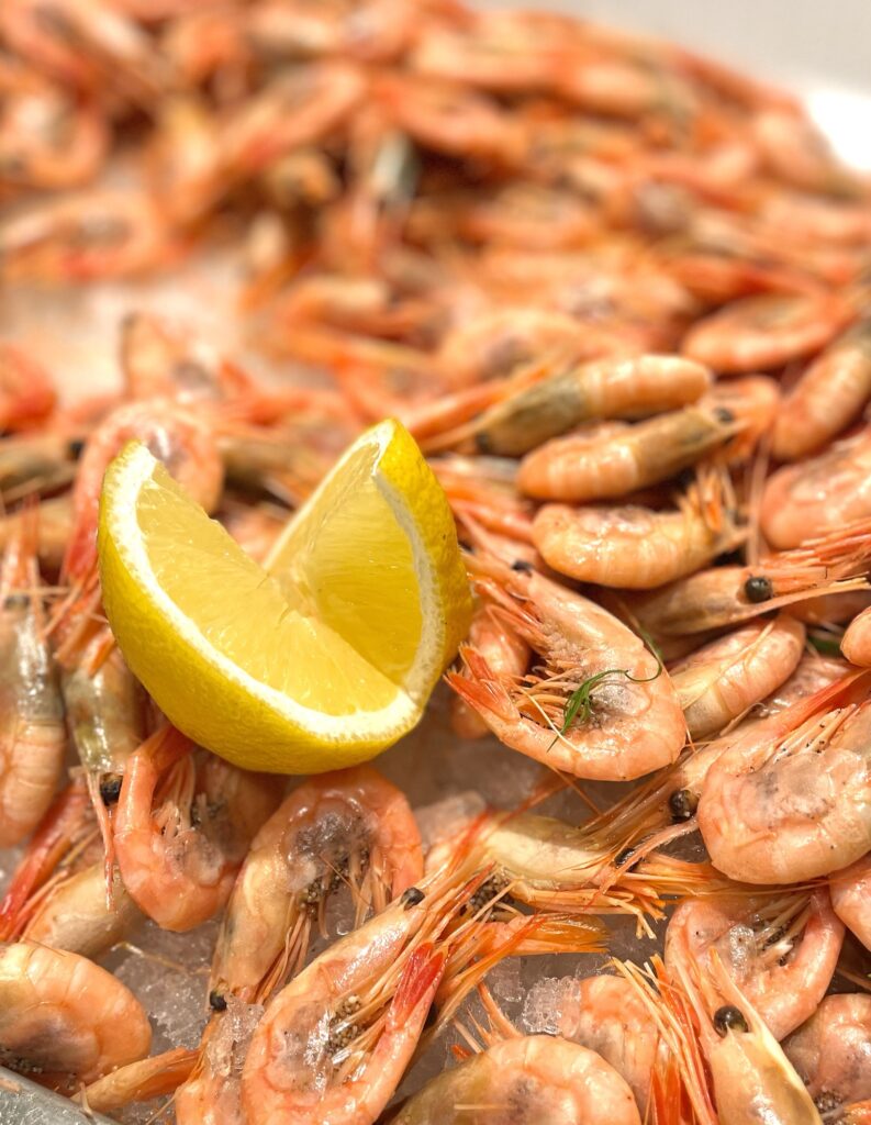 Vi gick in caféet som inte är särskilt stort, däremot finns massor med sittplatser utomhus. Här finns mackor i flera storlekar, från lite mer normala till de största med hela 300 gr skalade räkor. Handskalade dessutom kunde vi konstaterar med tanke på hur mycket skal man missat att ta bort.
