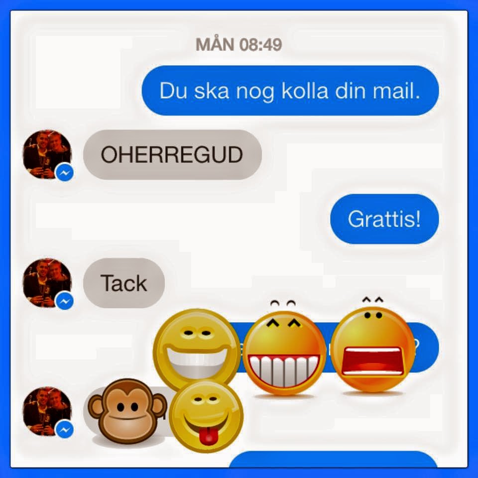 Sen öppnade jag mailen och där står det att Senior fått den lägenhet han tittade på förra veckan och nu alltså fått erbjudande om att skriva kontrakt på! Efter fyra år har han äntligen fått ett förstahandskontrakt på en etta här i närheten i ett områden han vill bo i. Av praktiska skäl har vi låtit mailen gå till mej och jag skickade snabbt vidare det till honom och fick tillbaka kommentaren OHERREGUD! Han var så otroligt glad! Å det var förstås jag med! Han flyttar redan 1 juni och då får jag tillbaka mitt träningsrum! Jag älskade mitt träningsrum och har inte alls varit lika motiverad att träna sedan jag fick flytta in grejerna i vardagsrummet efter hans senaste hemflytt. Nu kan jag flytta tillbaka igen, för gott!!!