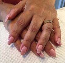 Så var det naglarnas tur! Klänningen var med så vi kunde hitta den exakta nyansen. Vi hittade den perfekta rosa färgen med lite glitter i. Ett lager grundlack, tre lager gellack och ett lager överlack senare var även naglarna klara och nu behöver jag inte bry mej på några veckor hoppas jag. Jag har inte testat gellack med lampa förut, så det blir spännande att se hur länge det håller. Jenna har alltså inte byggt mina naglar, sånt gör hon inte, bara målat dem.