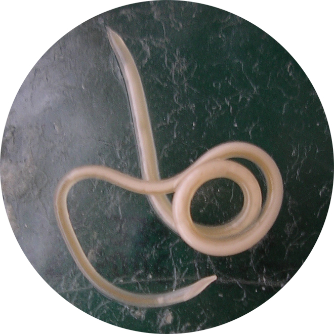 En dag kom en flicka till Linda med en ketchupflaska. Hon öppnade flaskan och visade en lång (0,5-1m) vit, fingertjock mask. Masken hade hon dragit upp ur sin mage genom halsen… Linda släppte allt hon hade och tog med flickan till läkaren förstås. Hon fick medicin och blev bra. När Linda för en tid sedan fick veta att hennes trädgårdsmästare inte kan sova på nätterna för att det känns som något rör sej i hans mage… ja, då fick han självklart också medicin och nu sover han gott på nätterna igen. Linda har tagit medicin hon med för säkerhets skull. Tänk så himla äckligt att dra upp en lång, fet mask ur halsen – URK!