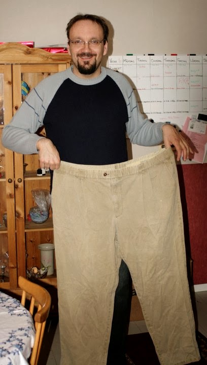 Han hade redan förberett sej på ett nej, så det är nog jag som är mest besviken. Jag ville verkligen att han skulle få chansen att känna sej helt färdig och smal. Så länge han har de där påsarna, så kommer han aldrig att ha nått hela vägen fram. Även om han är normalviktig. Så om det finns någon vänligt själ där ute som sitter på för mycket pengar eller är proffs på bukplastik och vill bjuda på en operation, så får ni gärna höra av er till oss 🙂