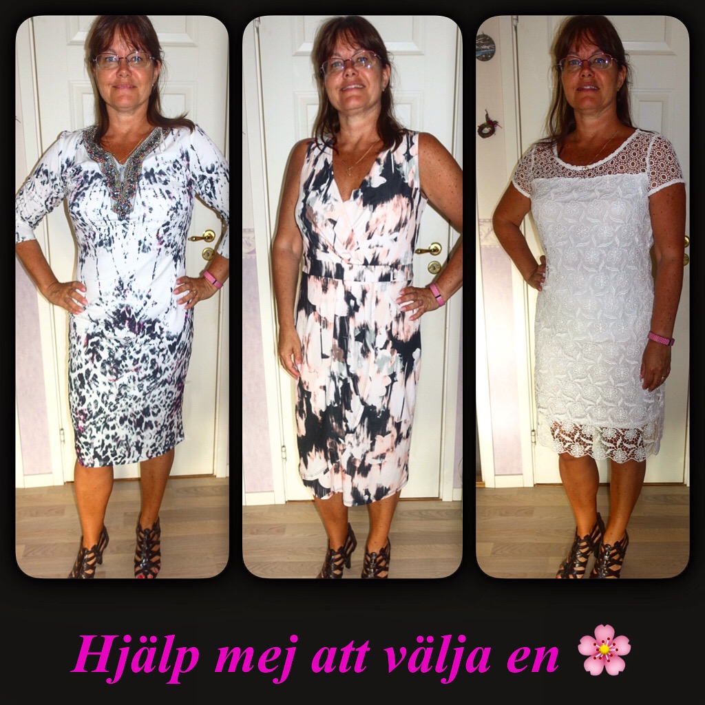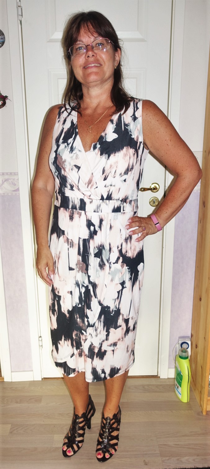 Det blev alltså den första klänningen som vann kampen! Den som står ut lite mot de andra två för att den är lite annorlunda. Jag gillar annorlunda! Den liknar inget annat jag har sen tidigare och känns lite mer elegant än de andra. Lite mer ”kvinnlig” på något sätt. Det kan även vara en fördel med de längre ärmarna om det finns en kall ac i matsalen på båten. Den här funkar även till andra sammanhang och året runt. Lite praktiskt får man också vara 🙂
