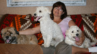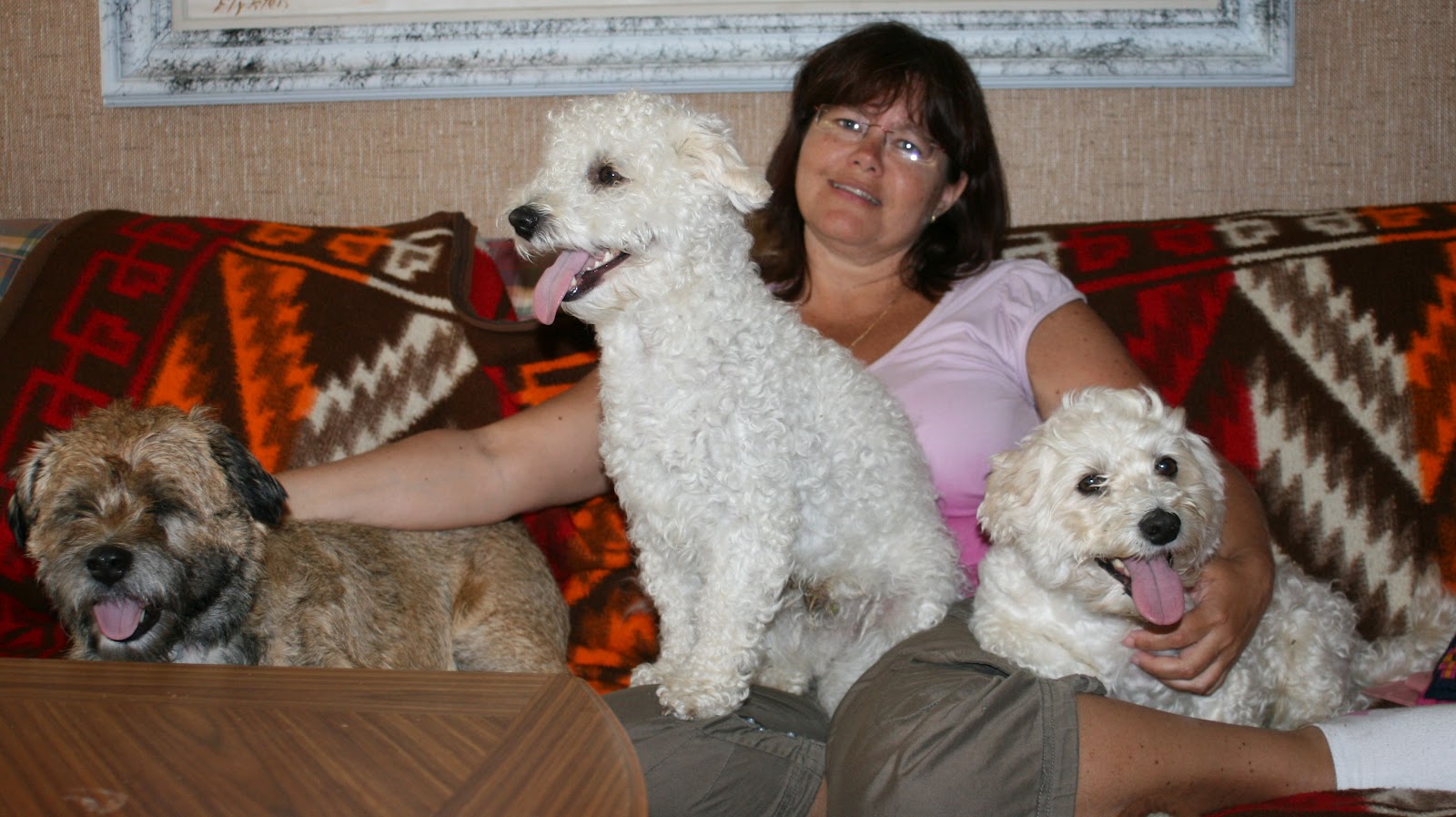 Ja, asså… En, Baileys alltså, har jag ju alltid. Han är min ögonsten och det finaste jag har. Men idag har jag två grabbar till här hemma. Brorsan har fullt upp med löpartävlingar nere på pensionatet och då hinner han och hans familj inte riktigt med sina hundar. Så efter lunch idag åkte vi och hämtade dem; Douglas och Alvin. Två superbusiga Bichon Frisée.